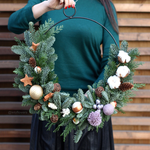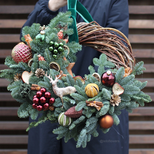 - Christmas wreath. It’s a relatively new decoration in Russia, so not every Russian is used to putting a Christmas wreath as a decoration at home. So if you’re picking a gift for someone tradition-bound and more disposed to old-school things, it’s probably better to go with a Christmas tree or a composition in a wooden box. However, if the gift is supposed for a person who loves new styles and ideas, Christmas wreath is a great option.