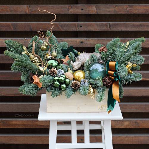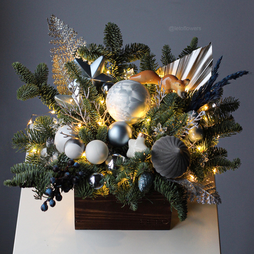 Small New Year compositions in wooden boxes are best value for money. Also we can offer you compositions with premium Christmas decorations by Imperial Porcelain Manufactory: they have a classy and top-quality look.