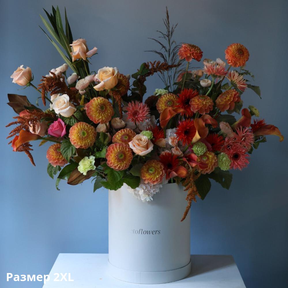 Designer bouquet in an orange hat box