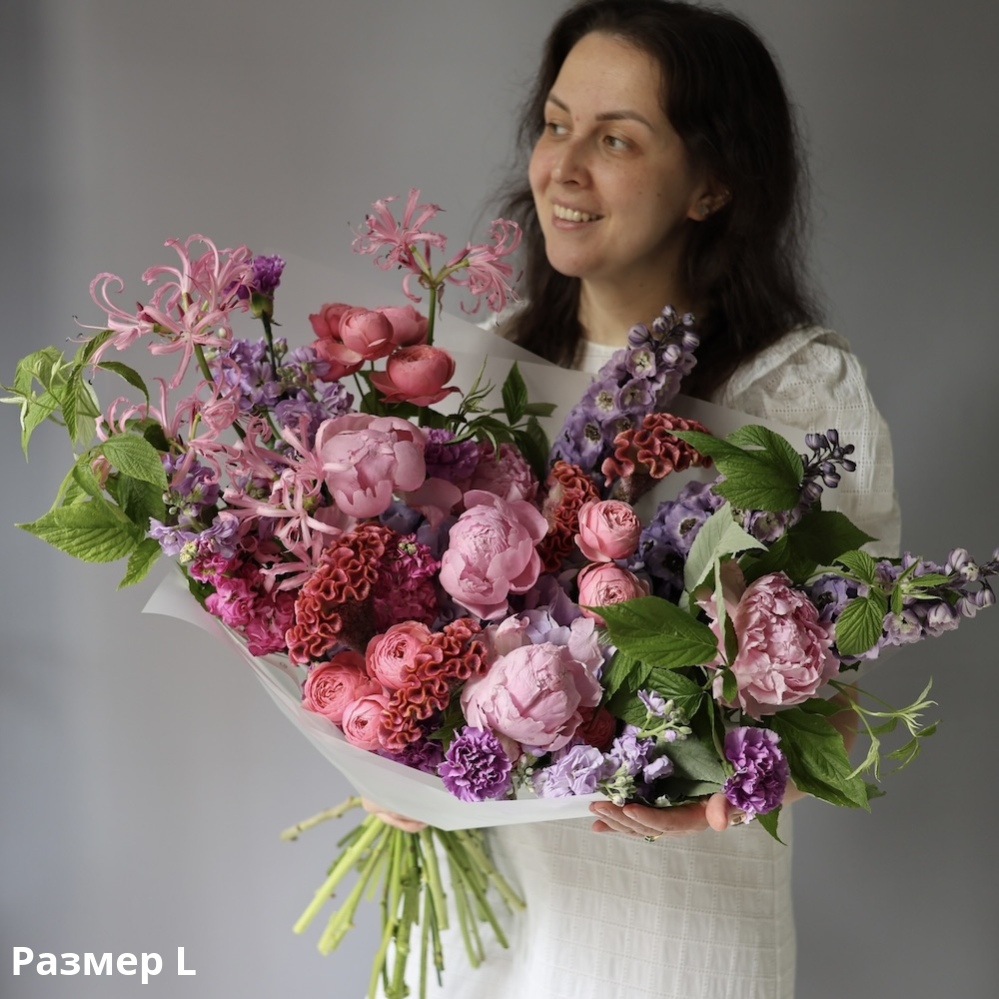 July is a season of magnificent pink sunsets and bright juicy berries. That is why our new 12 month collection bouquet consists of pink, lilac and fuchsia seasonal flowers.