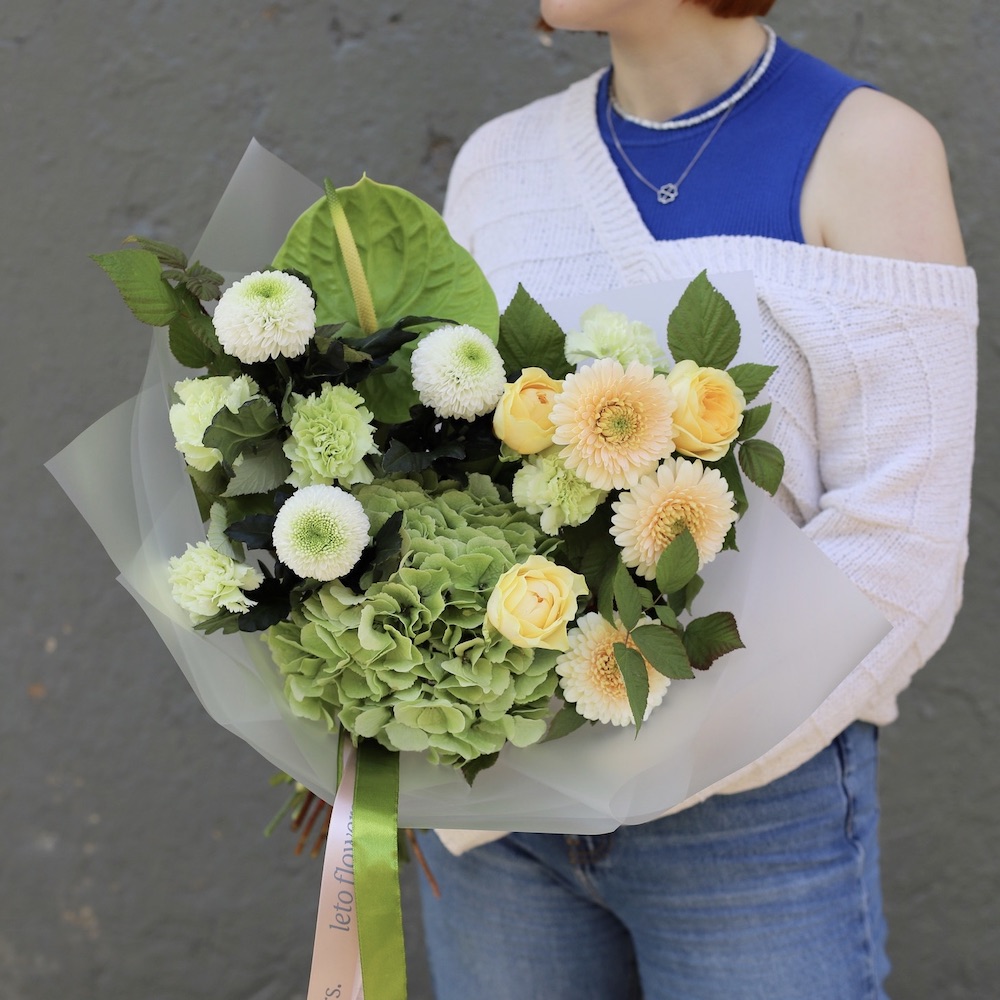 2. Remove a paper and cut the stems. Put a bouquet to a vase and make sure that all the stems are in water. Remove all leaves that come to water.