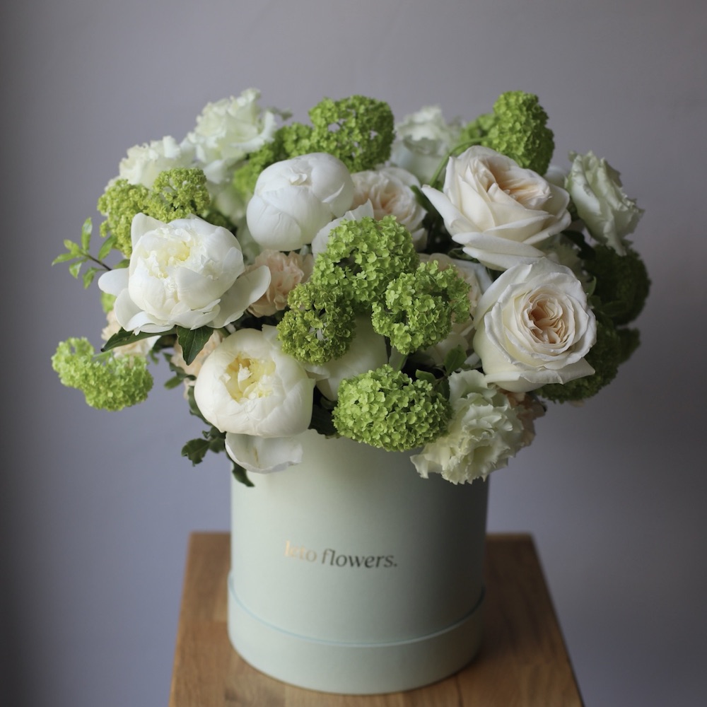 The hat box format is convenient. The recipient does not have to look for a suitable vase and cut the stems.