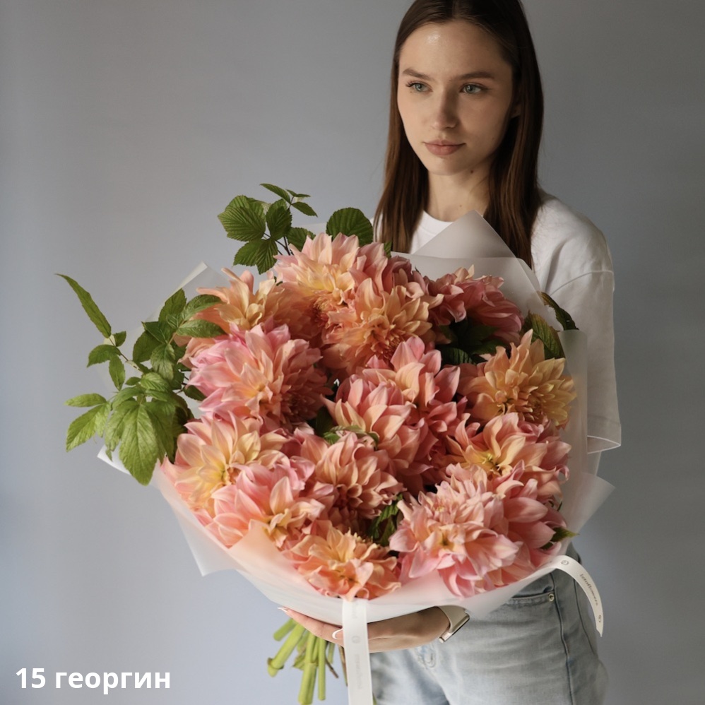 Unusual dahlias that are differ by its size and gentle color. You can also add greenery to the bouquet.