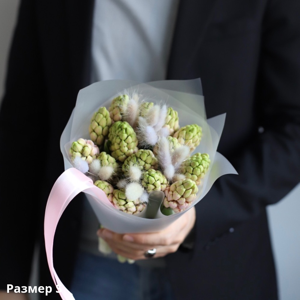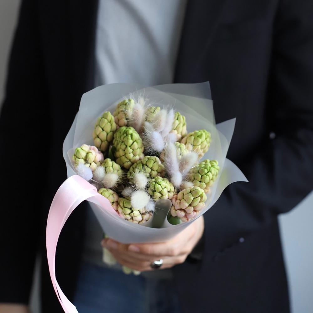 Combination of hyacinthus and lagurus fully meets this spring picture.