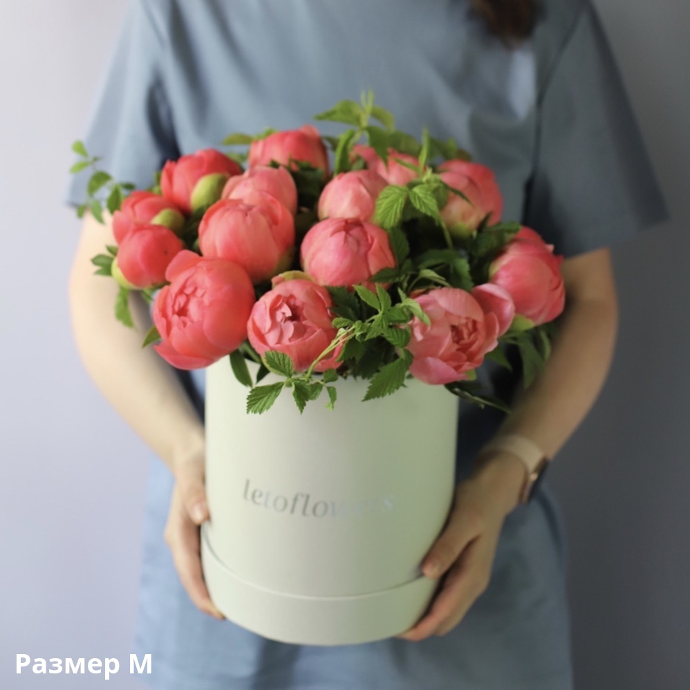 Coral Peonies in a hatbox – Order Flower Delivery to Moscow | Buy and Send Flowers Online