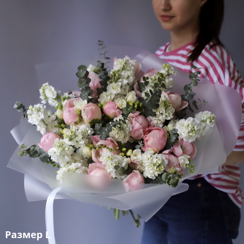 L 15 peonies + 15 stock + 15 freesias + greenery