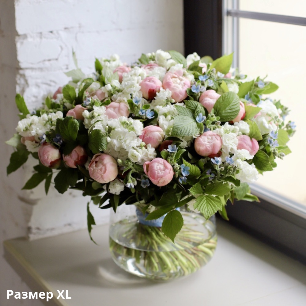 XL 35 peonies + 30 stock + 30 oxypetalum + greenery