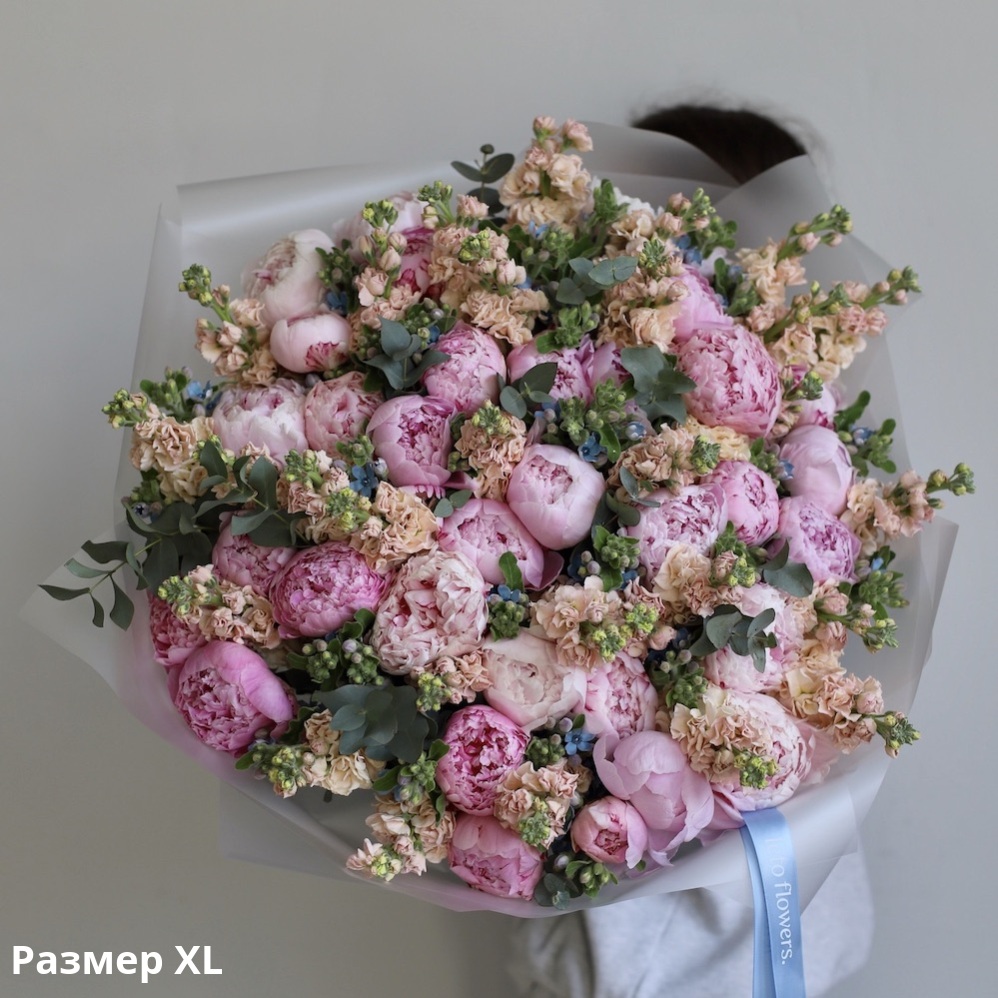 M 25 peonies + 20 oxypetalum + 20 stock + greenery