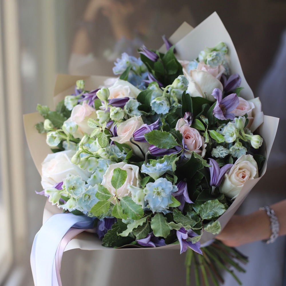 Garden Roses with Delphinium and Clematis