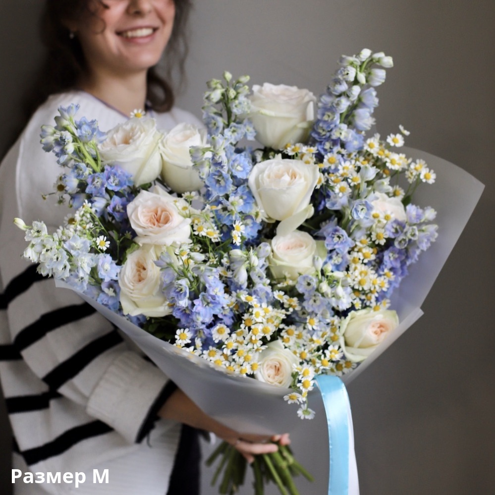 M 10 garden roses + 10 delphiniums + 15 chamomile