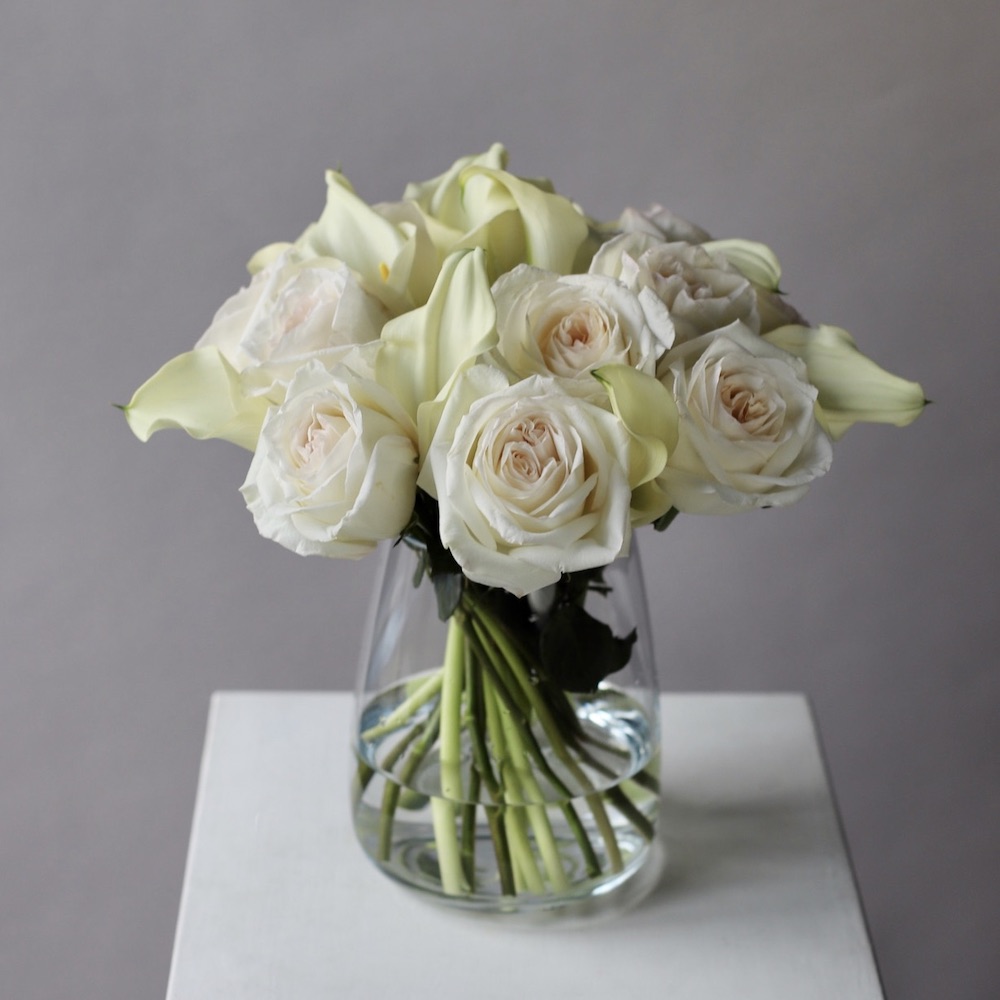 S: 11 Roses,10 Calla Lilies M: 23 Roses, 20 Calla Lilies L: 39 Roses, 30 Calla Lilies |