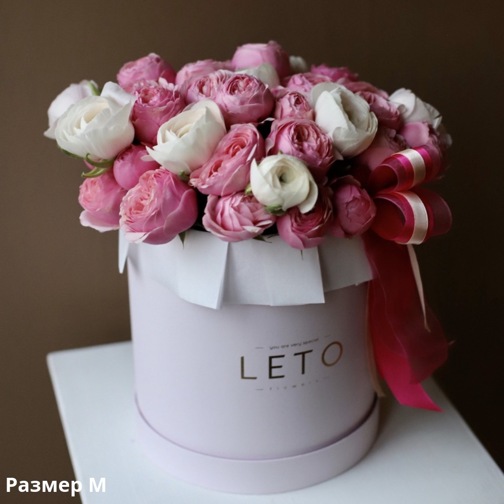 The hat box color can be different from the example on the picture. There is water box and conditioner for cut flowers inside the box. We recommend to add some water upon the delivery.