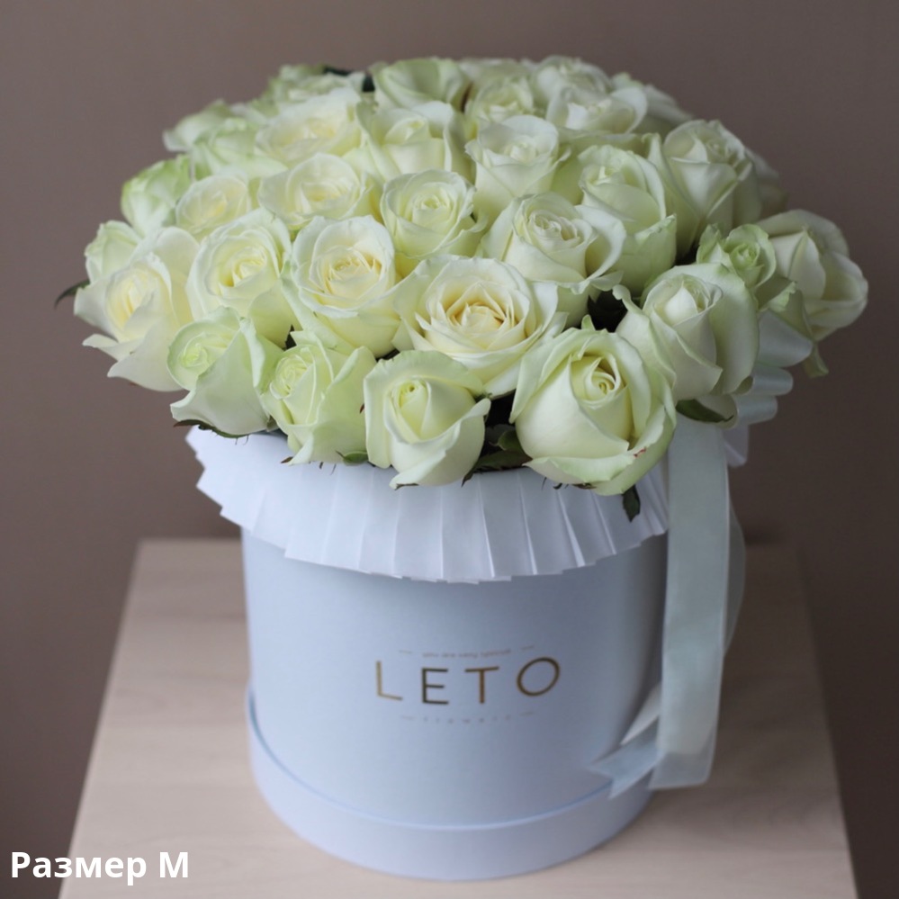 The hat box color can be different from the example on the picture. There is water box and conditioner for cut flowers inside the box. We recommend to add some water upon the delivery.