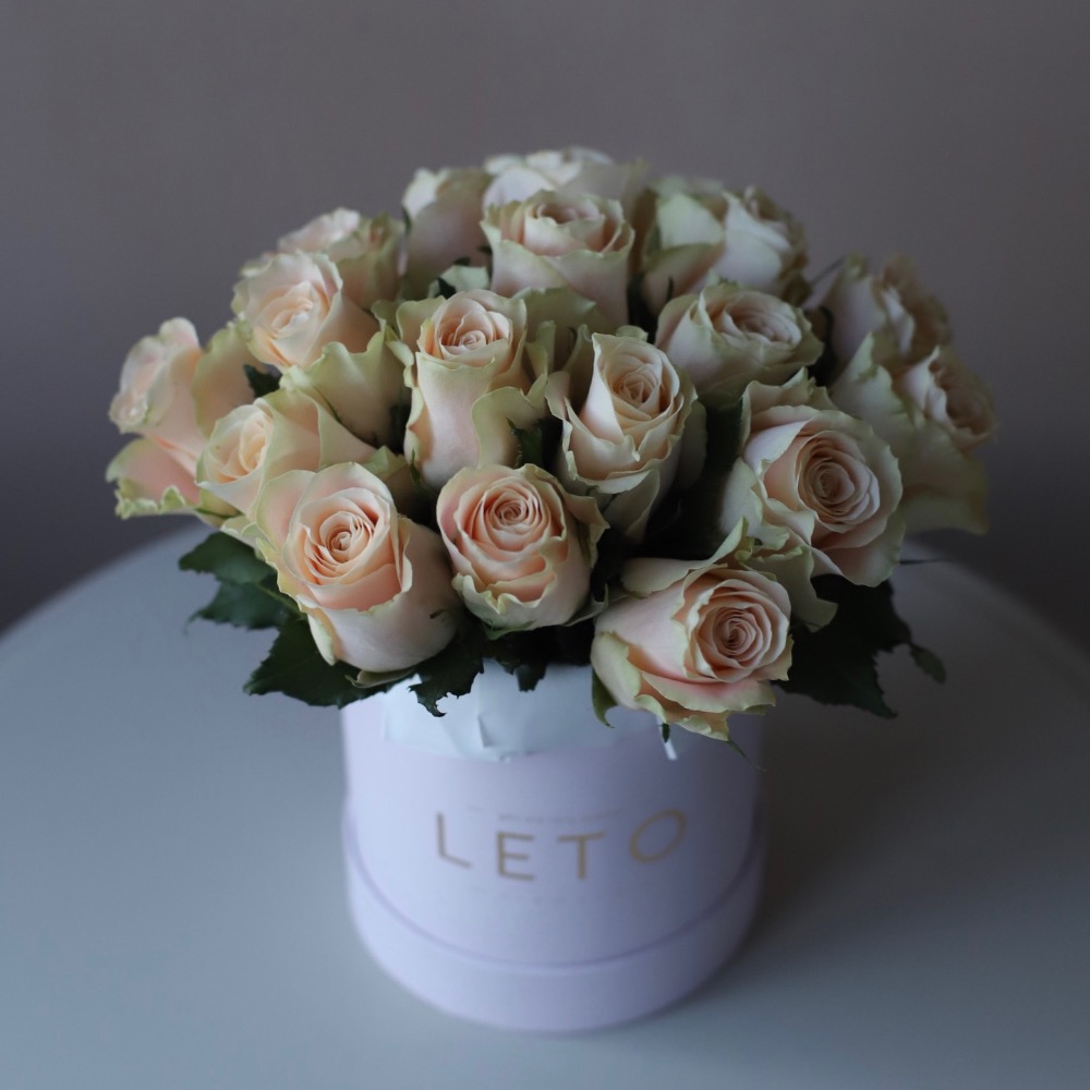 Creamy roses in a hat box