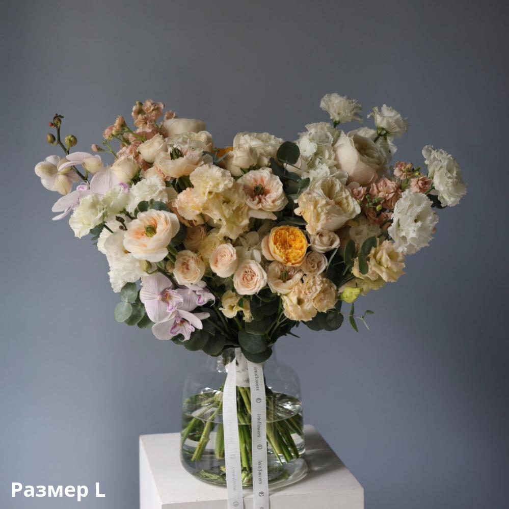 Signature bouquet of peachy, orange and creamy flowers can please any receiver. The hues of a bouquet are tender and neutral at the same time.