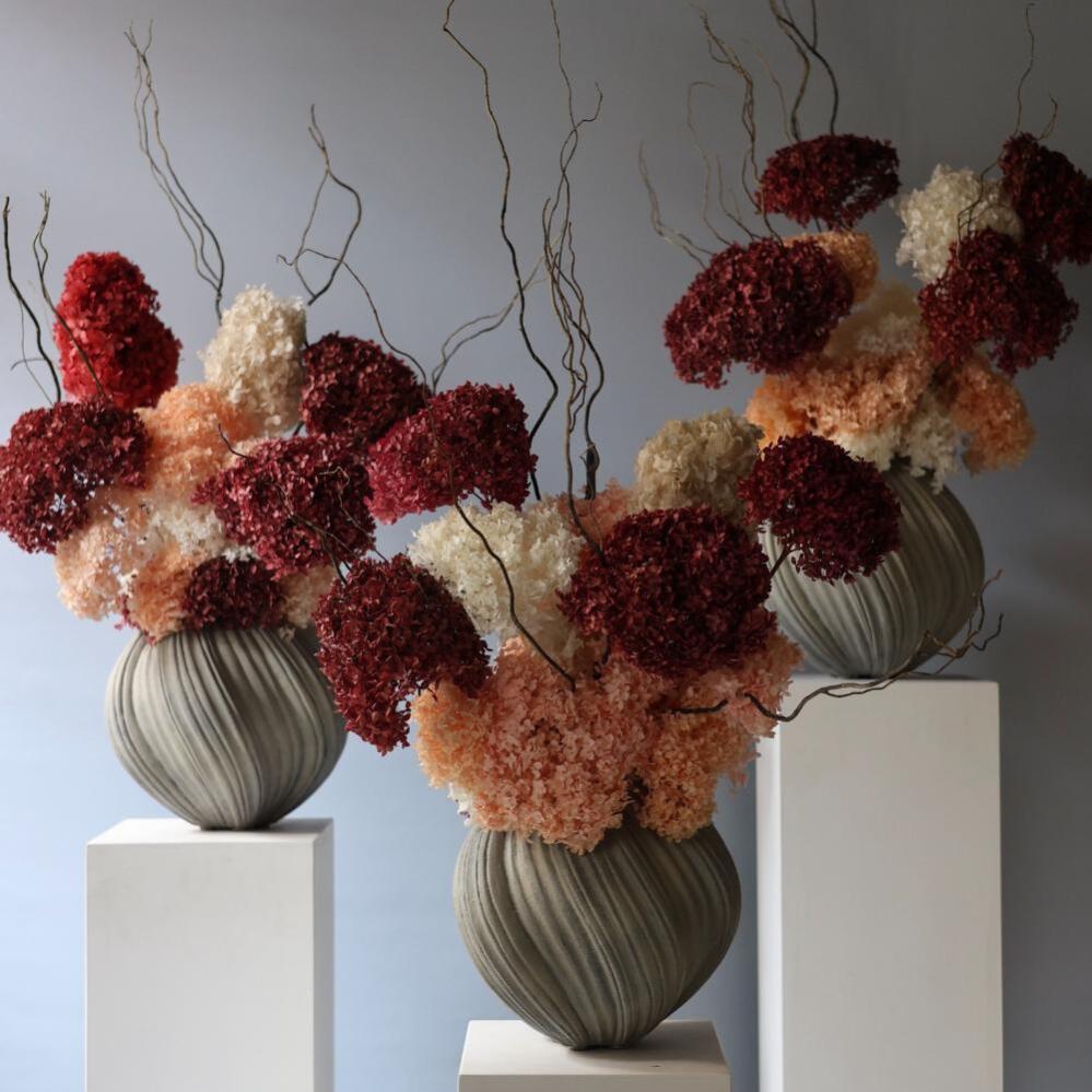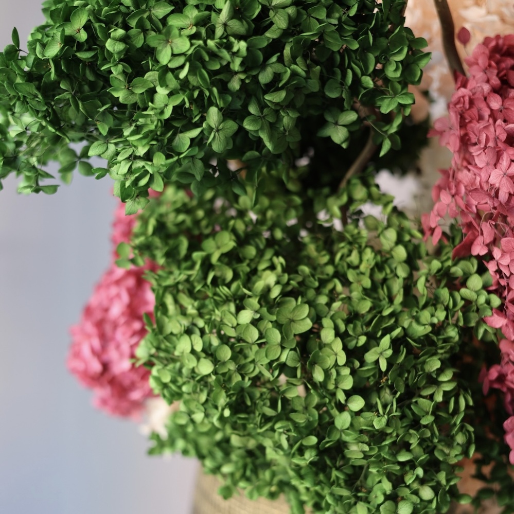 Arrangement of Preserved Hydrangeas in a Pot