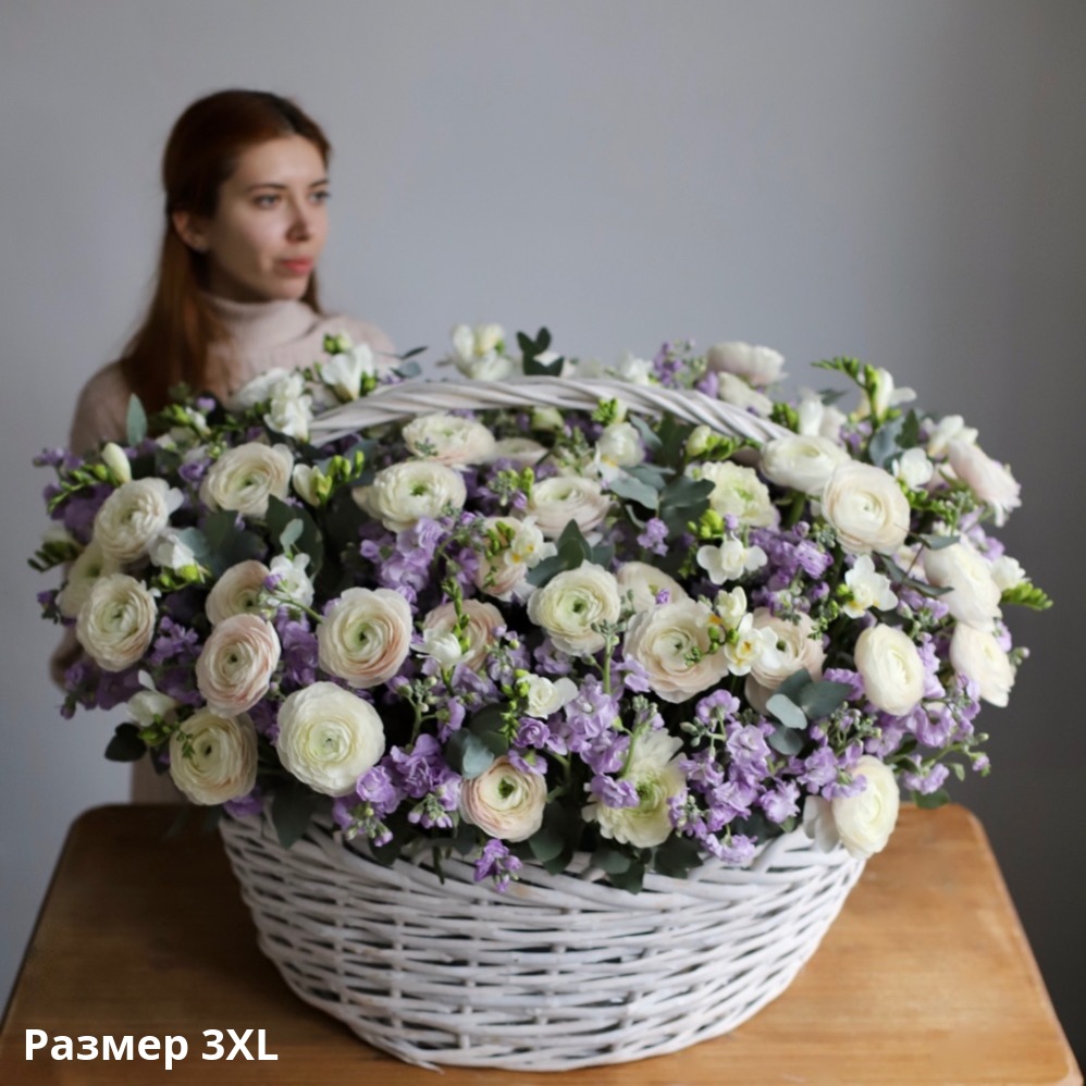 Basket and greenery are used at the discretion of the florist (you can write your wishes for color when placing an order).