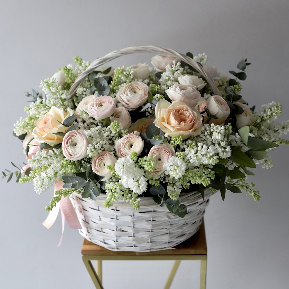 Basket and greenery are used at the discretion of the florist (you can write your wishes for color when placing an order).