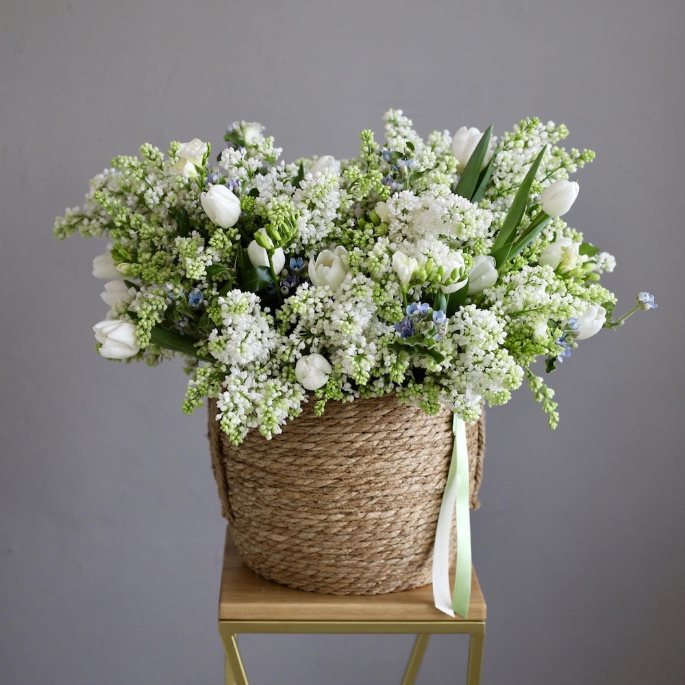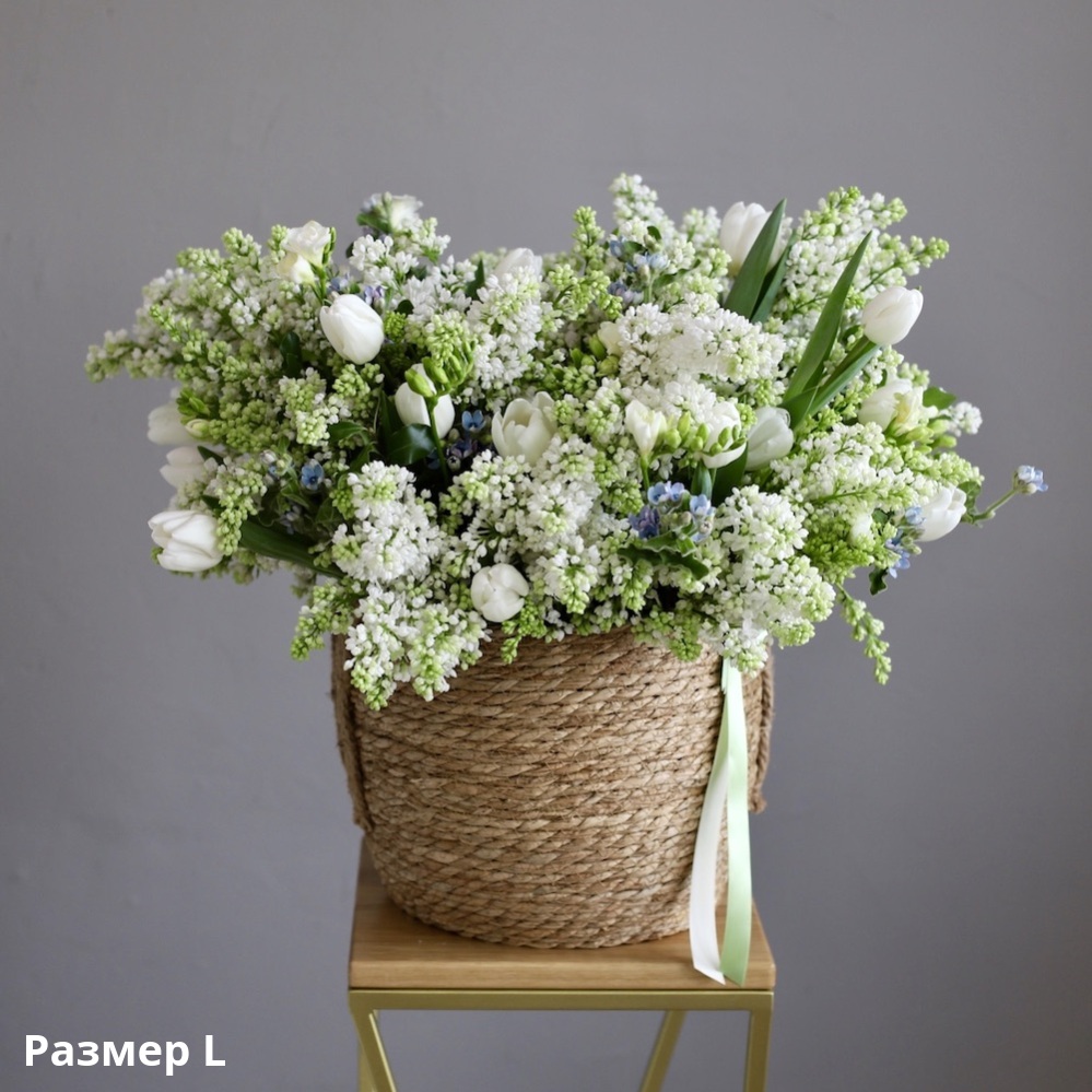 Lilac with spring flowers in a basket – Order Flower Delivery to Moscow | Buy and Send Flowers Online