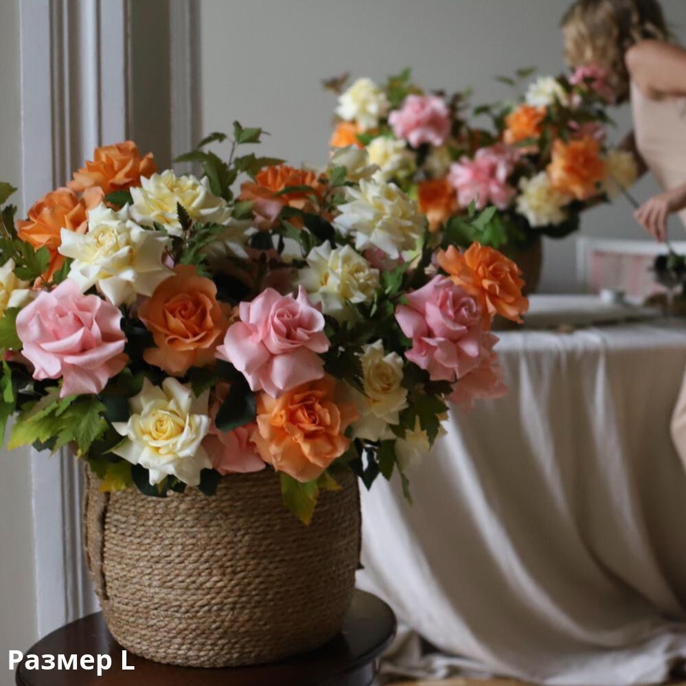 S: 25 roses + greenery M:40 roses + greenery L: 55 roses + greenery |