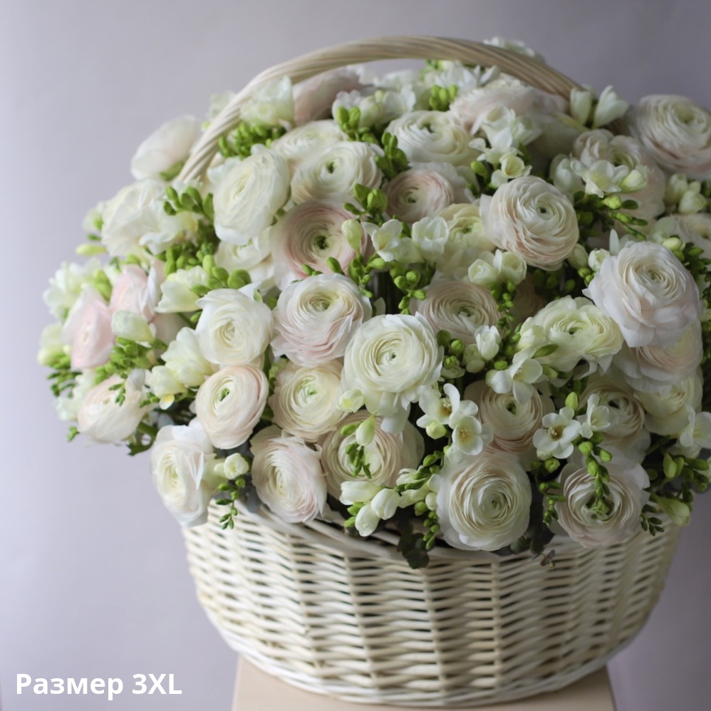 S: 16 freesia, 9 ranunculus, greenery M: 40 freesia, 19 ranunculus greenery L: 60 freesia, 29 ranunculus, greenery XL: 80 freesia, 39 ranunculus, greenery 2XL: 100 freesia, 49 ranunculus, greenery 3XL: 200 freesia, 99 ranunculus, greenery 4XL: 300 freesia, 149 ranunculus, greenery |