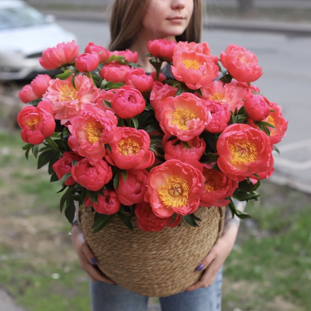 If you ask any woman which summer flowers she loves most, she’ll answer without hesitation – peonies. And it’s true: what could be more beautiful than a peony bouquet? Only a grand basket brimming with what feels like an entire garden of these vivid, luxurious blooms. Such a gift will delight anyone and be remembered as the most extraordinary, impressive present.